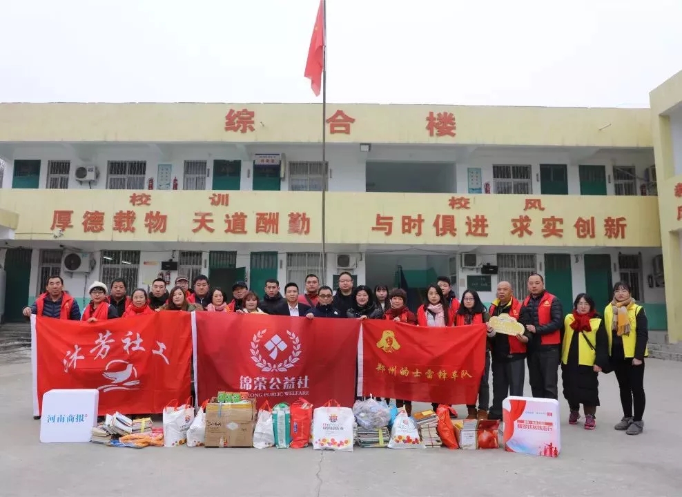 一大早,豫发·锦荣公益社、锦荣悦汇城的工作人员、河南商报的记者以及“郑州市二七区沐芳社工”、“郑州的士雷锋车队”等多个社会爱心组织成员们冒着严寒聚集到了锦荣国际轻纺城,登上了满载着爱心图书和助学物资的大巴,向新密袁庄乡郭庄小学进发。