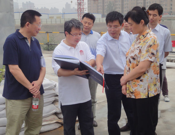 6月26日下午,郑州市二七区区委书记蔡红,区委常委、办公室主任赵吉平,副区长董治会在建设局、防汛办负责人陪同下,莅临公司二七服装工业园项目视察工作。