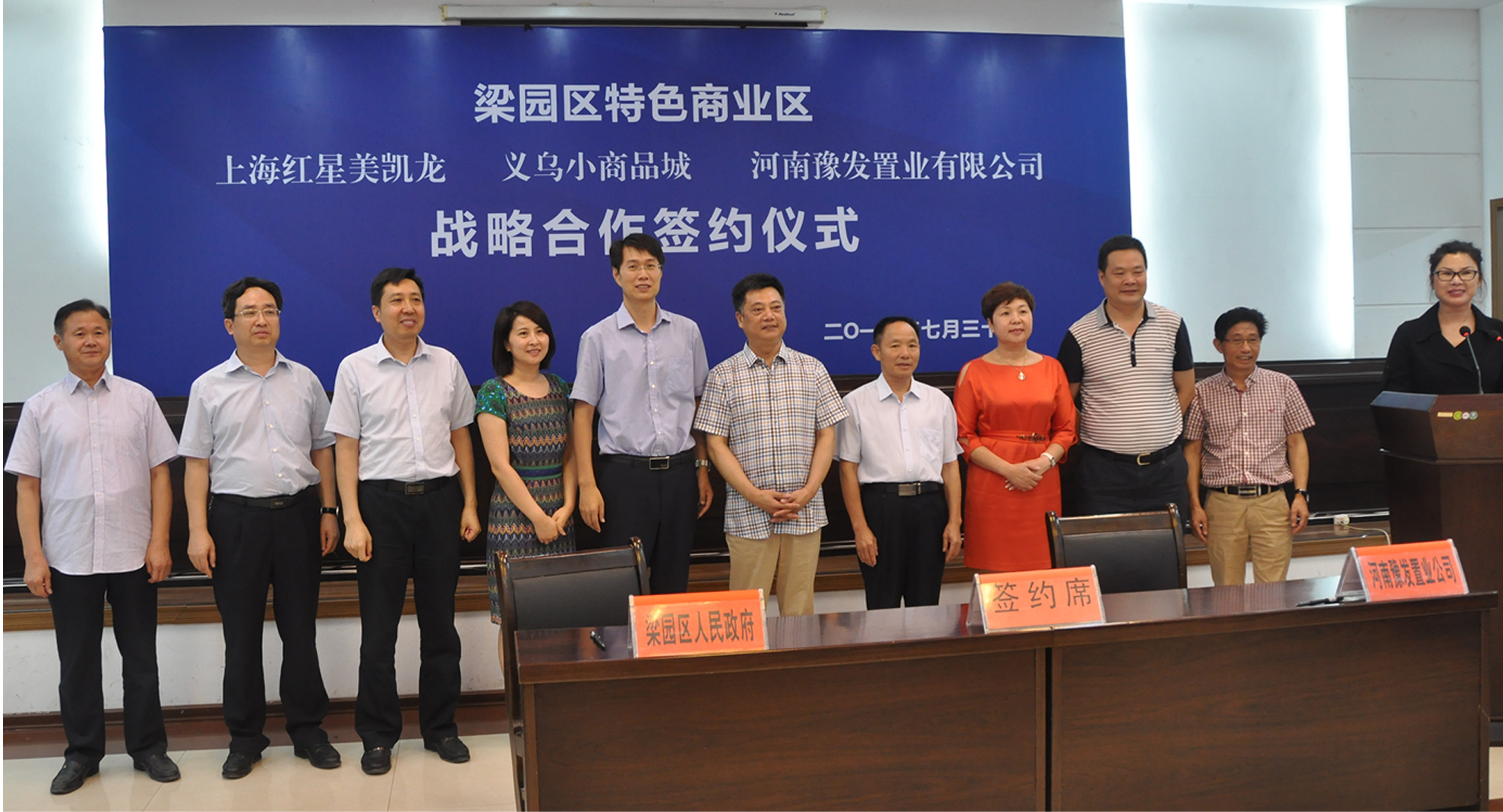 7月30日,豫发集团“商丘锦荣电子商务港项目”战略合作签约仪式在商丘市梁园区行政中心成功举行,商丘市人民政府副市长张弛、梁园区四大班子领导和有关局委负责人出席了签约仪式。公司商丘项目经理梁学立及行政管理中心、投融资中心相关负责人参加了签约仪式。