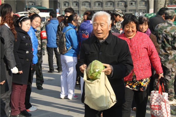 11月14日,锦荣公益社在锦荣轻纺城以及绿城广场定点连续两天免费发放,卷心菜虽小,却是锦荣公益社对山西菜农困难的深切关爱,也是对郑州市民的亲情回馈。