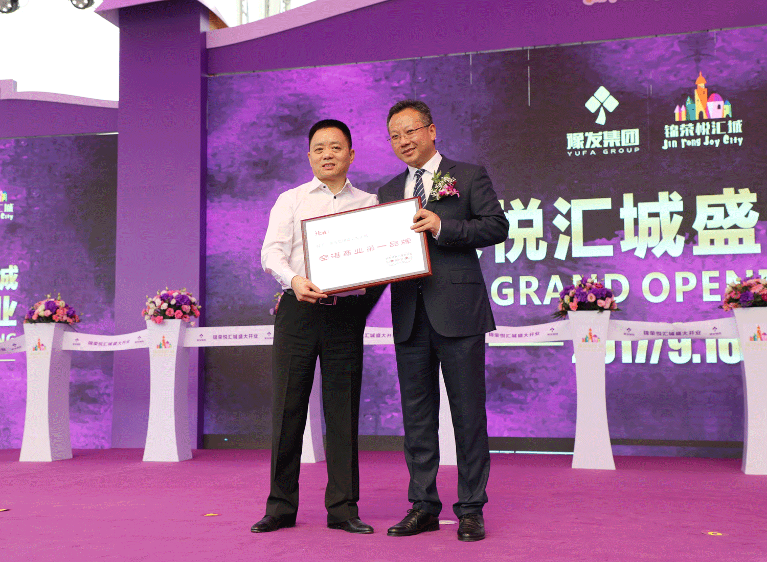 9月16日上午,豫发集团旗下首个商业综合体——锦荣悦汇城开业庆典在郑州航空港区盛大举行。河南工程学院党委副书记耿广智、河南省房地产业商会常务副会长兼秘书长赵进京、河南省商业行业协会会长何宏剑,豫发集团董事长王建树携公司高管,与合作商家、金融单位、商界大咖、入驻品牌商家代表、媒体朋友共同出席了开业庆典。著名演员张馨予现场助阵,与广大市民共同见证港区商业传奇的盛大揭幕。