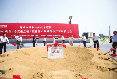7月24日上午,商丘市城乡一体化示范区2018年第三季度重点项目暨豫发产业城集中开工动员大会举行。与会人员包括河南省及商丘市政府领导、一体化示范区管委会等机关单位、主流媒体人士、豫发合作单位、豫发各产业领域众多商户及其他慕名而来的商户等社会各界人士,1000余人来到商丘市城乡一体化示范区的豫发产业城项目,共同见证豫发产业之翼振翅待飞。