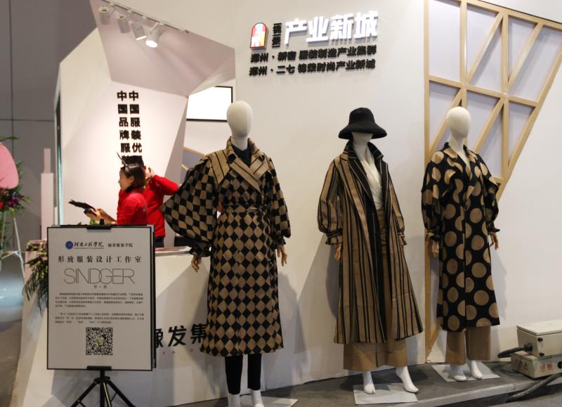 此次参展的10家企业分别是来自锦荣•产业新城的“烟花烫”、“妙彩依恋”、“威威服饰”、“逸展服饰”、“衣研堂”,以及来自锦荣轻纺城的“儒袖莊”、“豫颜”、“尚牡丹”、“原创设计师联盟基地”、“慕依鑫”。豫发集团与河南工程学院共建的“锦荣服装学院”也携作品参与展出,其强大的原创研发能力惊艳了不少现场观众。