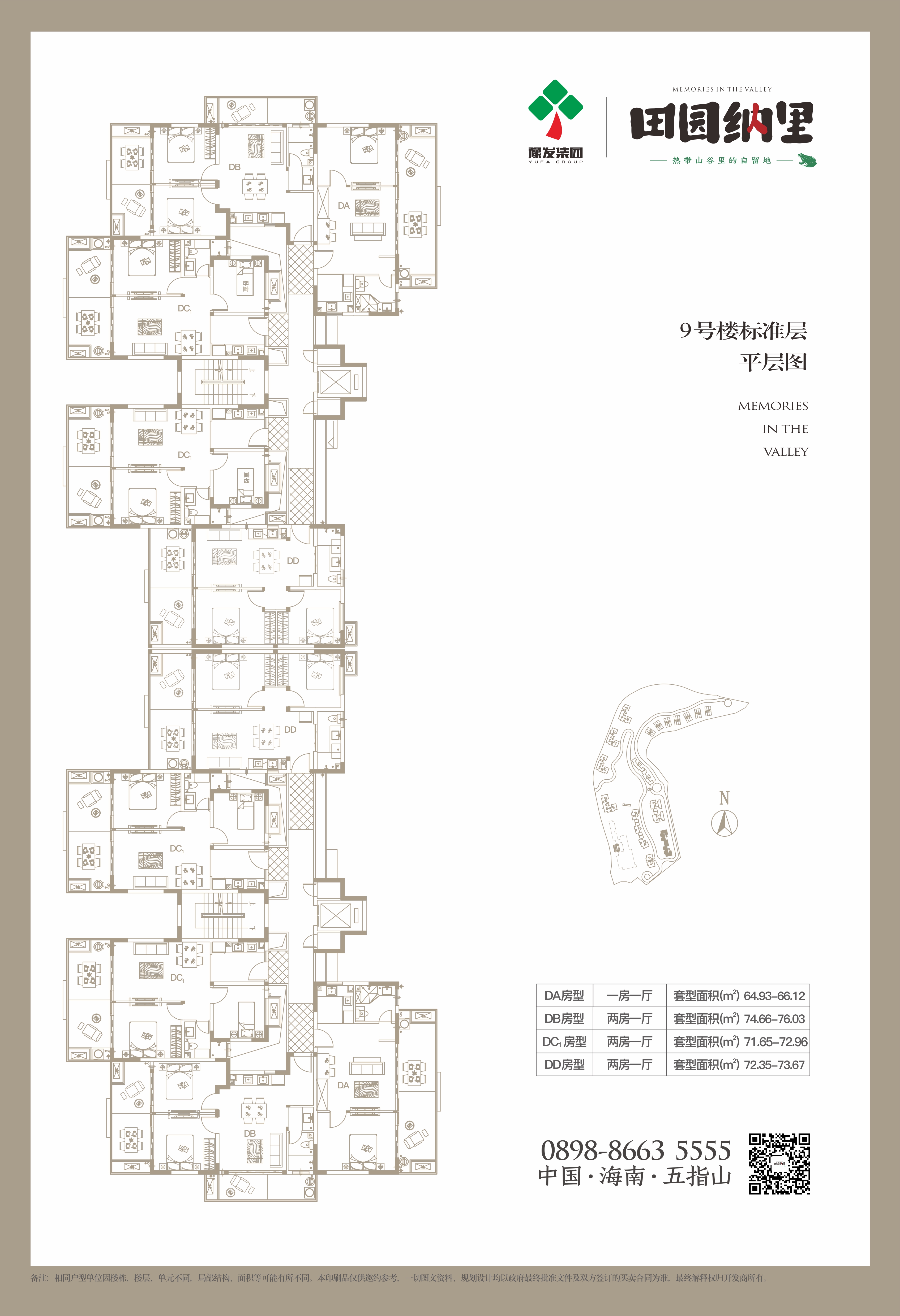 未来·田园纳里项目坐落于五指山市通什镇番茅村北侧,西临规划道路。东西长约160多米,南北长约440多米,用地形状不规则,且用地内高差较大,地块北面以居住为主,地块南面由住宅、酒店组成,该项目占地面积67930.09平方米,项目地块由一块住宅用地和一块酒店用地组成,其中住宅总用地面积 58851.63 平方米,总建筑面积86876平方米,容积率1.3,建筑密度17.7%,绿地率45%,建筑高度小于或等于45米,酒店用地面积为 9078.46 平方米。总建筑面积17030.41平方米,容积率1.29,建筑密度23.1%,绿地率55.0%,建筑高度小于或等于33米,拟建五栋高层住宅,四栋多层住宅,八栋低层住宅;一幢多层酒店,以及少量配套用房。